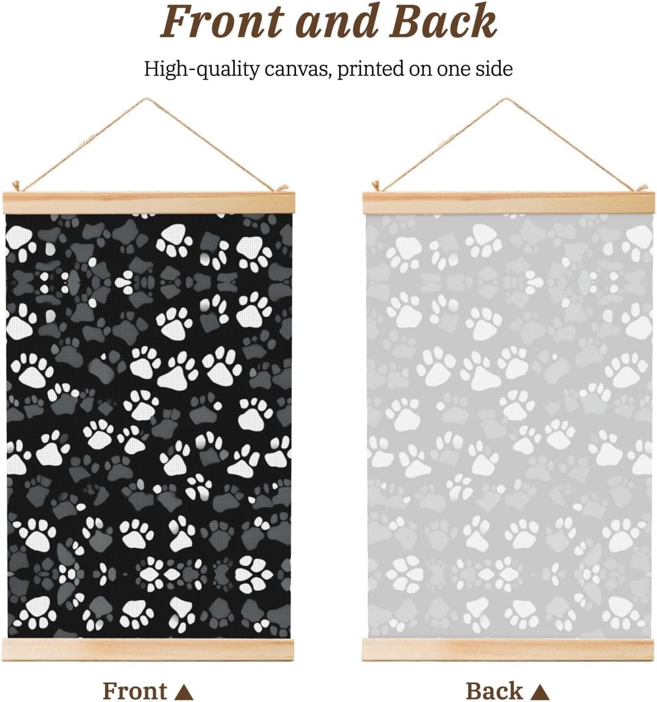 Our Black And White Paw Print Print Wooden Poster Hanger Is An Excellent Addition To Your Home Decor Or A Perfect Gift For Friends And Family. Made Of Selected Quality Canvas With Brilliant And Enduring Colors, This Wall Art Is Designed To Resist Water, Dust, And Fading, Ensuring The Bright And Vibrant Art Lasts. The Polyester Is Enclosed Between Two Teak Wood Hanger Scrolls With An Attached 35cm Rope For Easy Hanging. Installation Is Made Simple With The Included Two Nails In A Plastic Box. The Modern Minimalist Style Of Our Wall Hanging Complements Any Home Decor, Elevating The Artistic Ambiance And Brightening Up The Room. Experience The Elegant Transformation This Wall Hanging Scroll Painting Brings To Your Spaces Today.