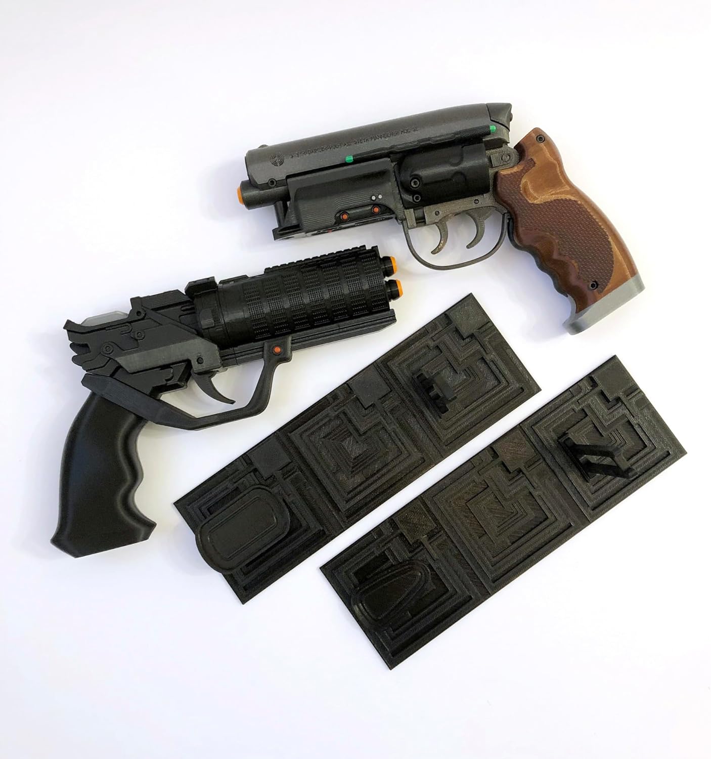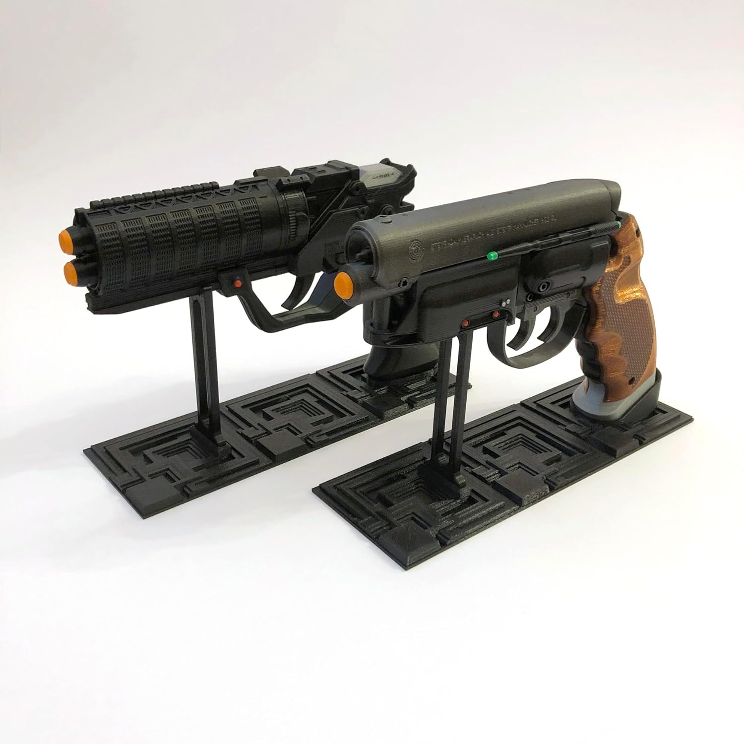 This listing is for Rick Deckard and Officer K's blasters with display stands. These items are printed at 80% infill so they have some weight to them. Also they have moving parts but they're not functional, not real guns. Size: about 10" (245 mm). Weight: 350 grams (Deckard's Blaster). Check out my other listings for more props.