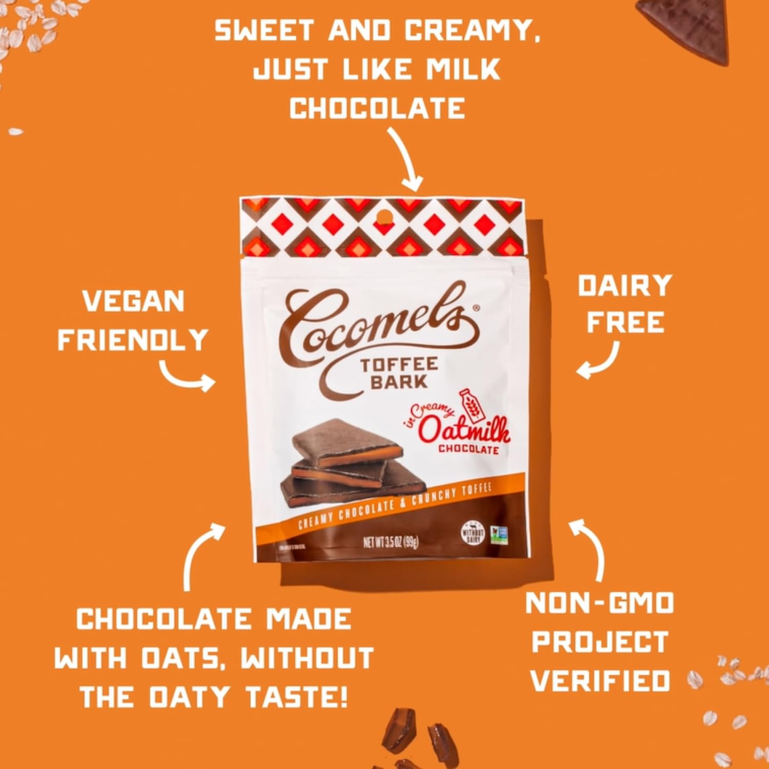 Cocomels Creamy Oatmilk Chocolate Toffee Bark, Creamy Chocolate & Crunchy Toffee, Made without Dairy, Vegan, Gluten Free & Non-GMO, 3.5 Ounce (Pack of 6)