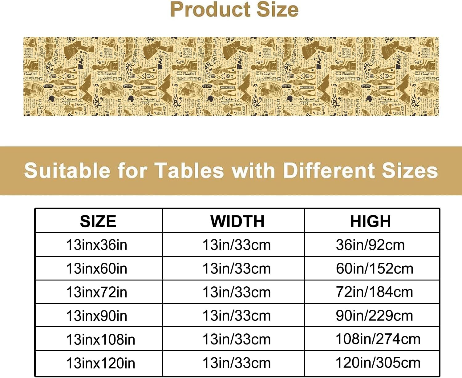 Product description Material description: Linen Proper Size: When Choosing Table Runner For Your Dining Table, You Should First Determine The Proper Size.A Table Runner Should Be Sized Approximately 1/3 The Width Of Your Dining Table. The Length Is Up To You. We Have Small/Short Table Runner In 13X36 Inch; Long Table Runner In 60 Inches /72 Inches Long/90 Inches Long; Extra Long Table Runner In 108 Inches Long/120 Inches Long. Multi-Scenes Use: Great For All Seasons,Spring,Summer,Fall,Winter;Suit For Home Entry Way Decor, Coffee Tables,Dining Tables,Kitchen,Living Room Table Dresser Scarfs,Outdoor Party-Wedding/Bridal/Anniversary/Fiesta/ Baby Shower/birthday/Tea Party Table Decorations for Women Stain Resistant & Heat Resistant,Made From Durable Linen Fabric. Hand washing is recommended. Machine washed; tumble or line dry; light iron; Do not bleach. We wish you happy shopping! Wish you a happy life!