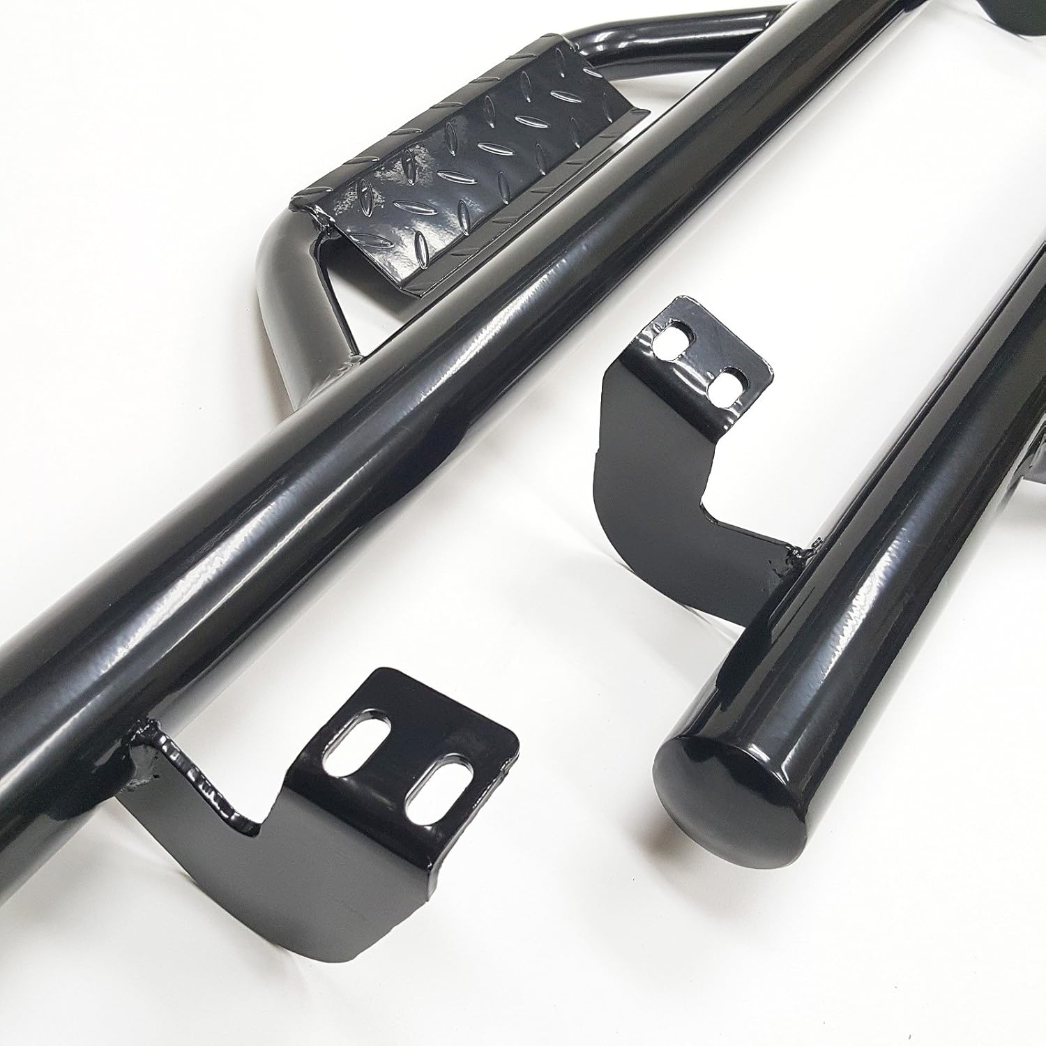 Type: 3" Round Side Step Nerf Bar with Dropped Steps Package Include:2 x Side Step Bar (Left and Right)Mounting BracketsBolts and WashersInstallation Iinstruction upon requestMaterial:Heavy Duty 3" Heavy Duty Steel TubeColor:Black (Semi Gloss Finish)Placement on Vehicle:Left and Right sidesThis Product Is Designed To Compatible For The Following Vehicle:2005-2019 Toyota Tacoma Crew Cab (4 Full Door models)NOTE: We do recommend professional installation.