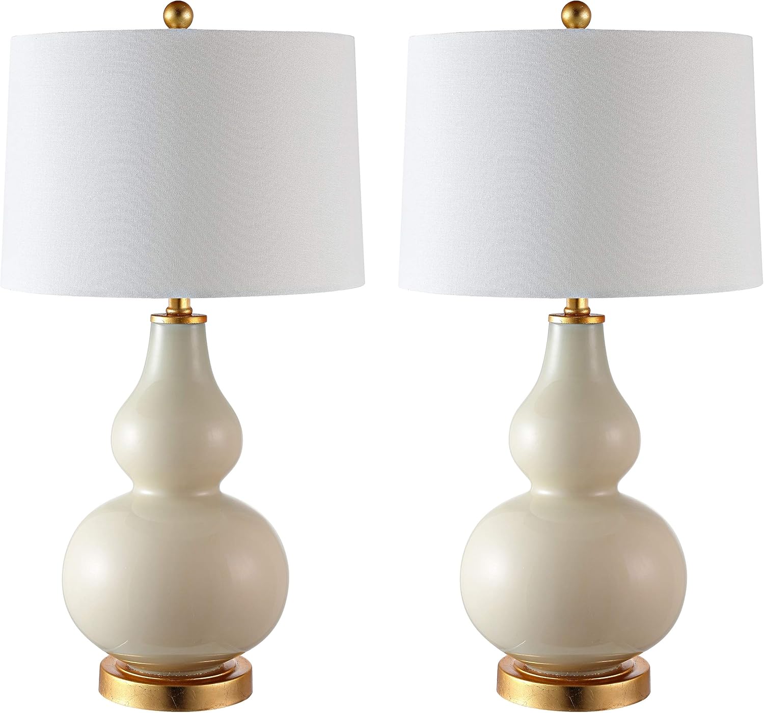 Designed for the gracious home, this contemporary table lamp adds refined modern luxury to any living room or bedroom. Perched on a chic gold leaf base, a sophisticated neutral cream hue adorns its elegant curves. Its crisp white shade is complimentary.