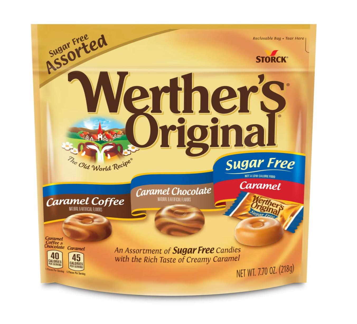 Werther's Original Sugar Free Assorted 7.7 OZ - Pack of 3 - Each bag contains 3 Flavors - Caramel, Caramel Chocolate, and Caramel Coffee is a great way to indulge in something sweet without feeling guilty. You can enjoy the delicious taste of Werther's Original Sugar-Free candies with peace of mind. This pack contains three 7.7 Oz bags, each with a different flavor: caramel, caramel chocolate, and caramel coffee for a flavorful assortment that everyone can enjoy! Not only are these candies sugar-free but they also contain no artificial colors or flavors so you can satisfy your sweet tooth without compromising on quality. Indulge yourself in the deliciously creamy flavor of Werther's Original Sugar Free candy.